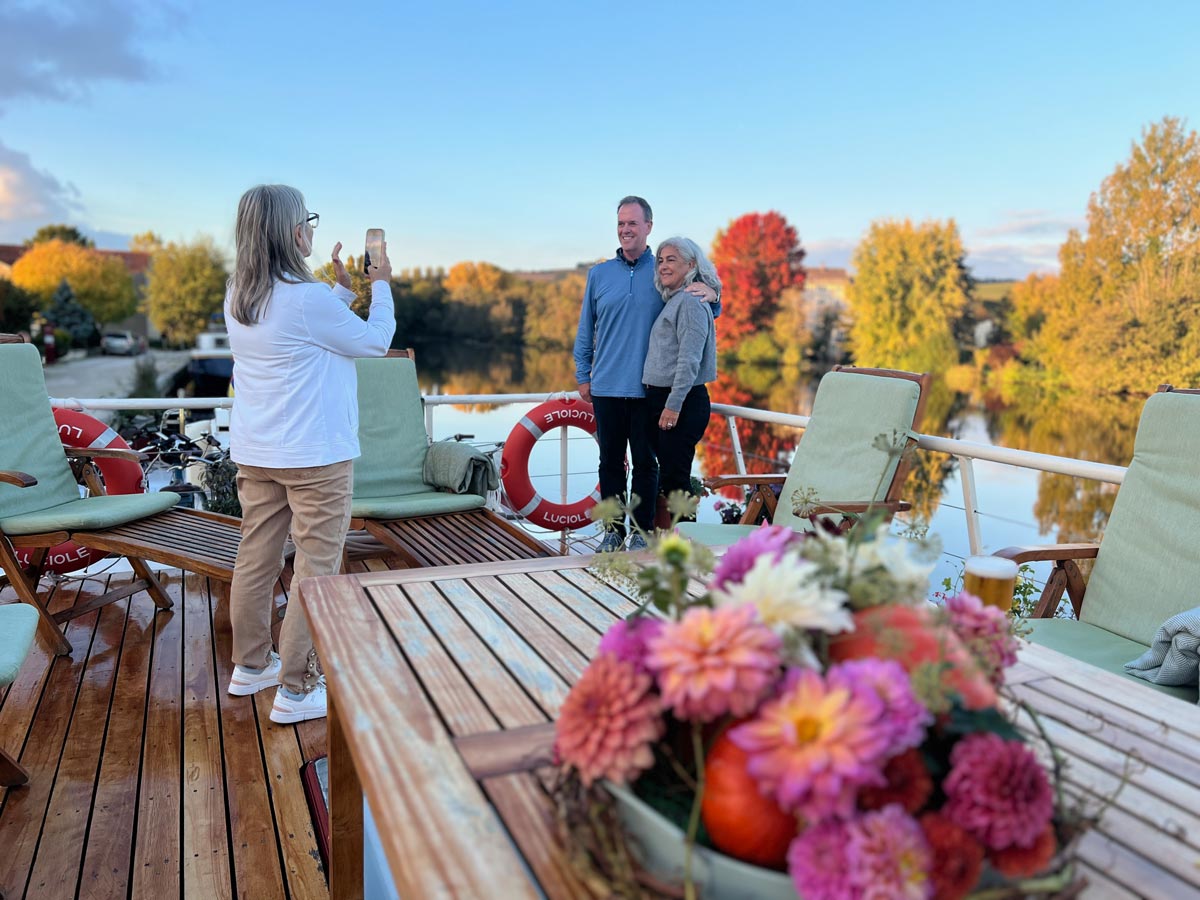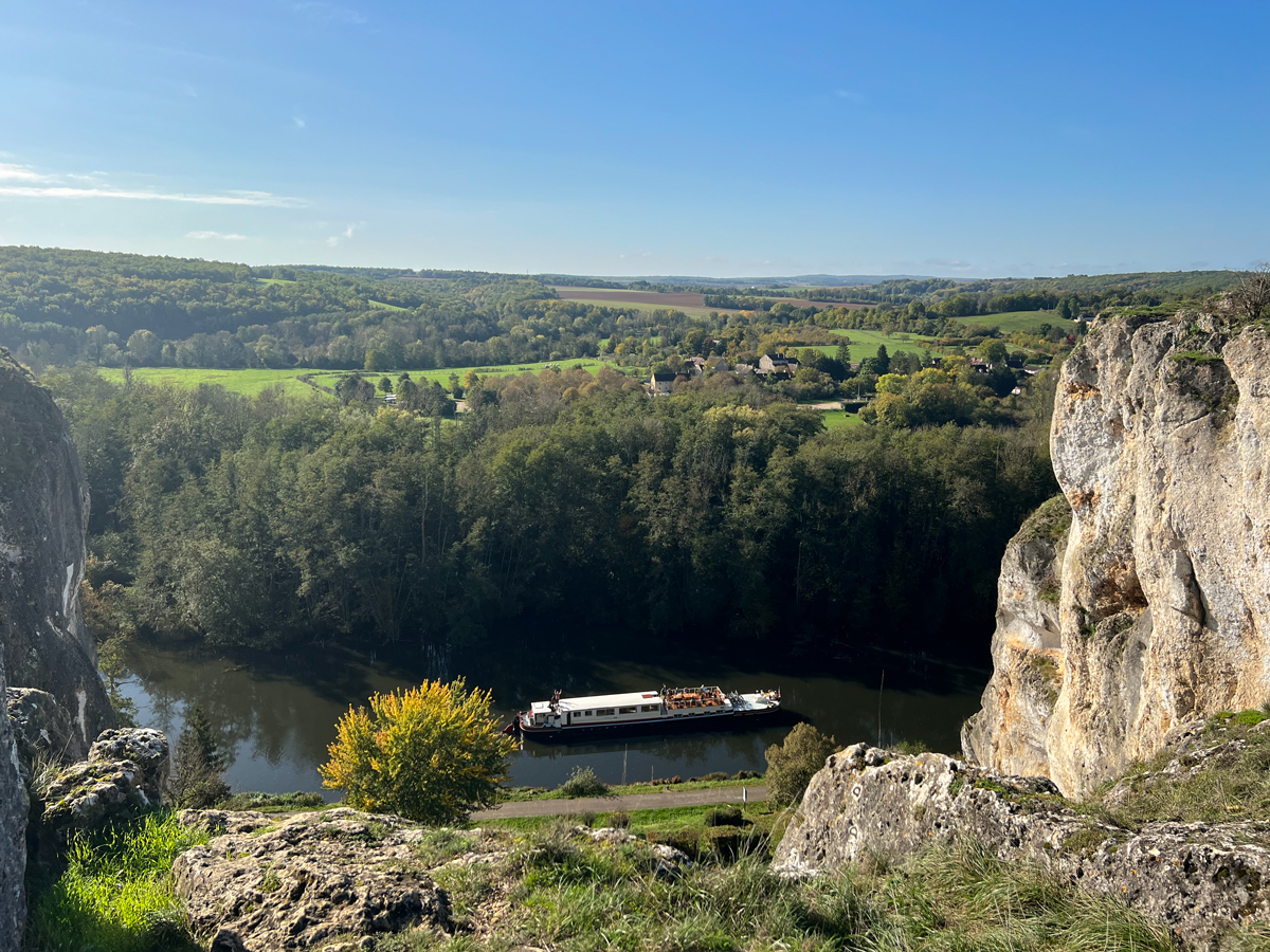 The long cruise from Mailly-le-Château to Accolay was bathed in sunshine. Passengers sat on deck, watching the bucolic countryside slip by. At this time of year, the air cools as the sun sets, but there are plenty of cosy blankets to wrap up in whilst sipping one of James’s famous cocktails.